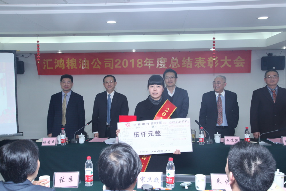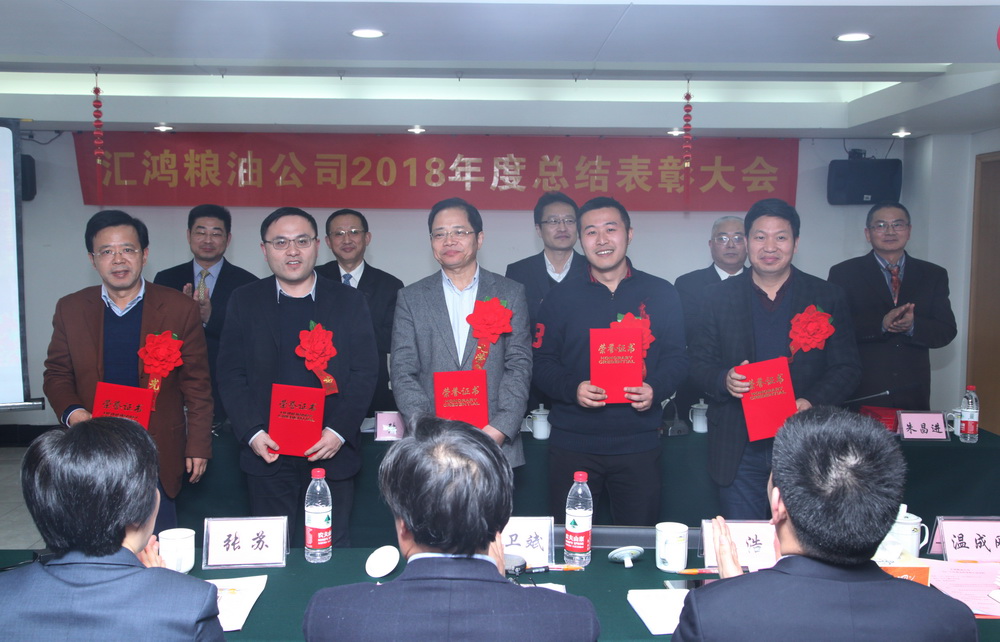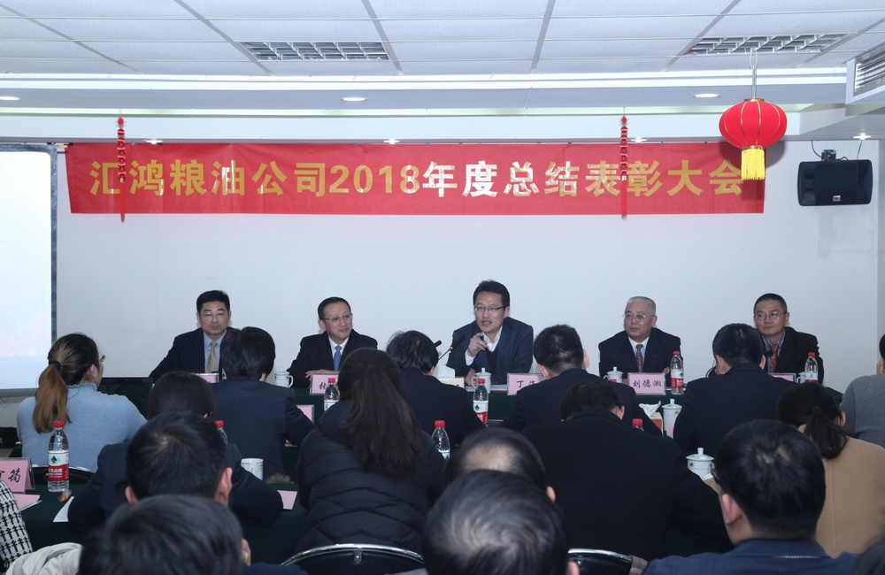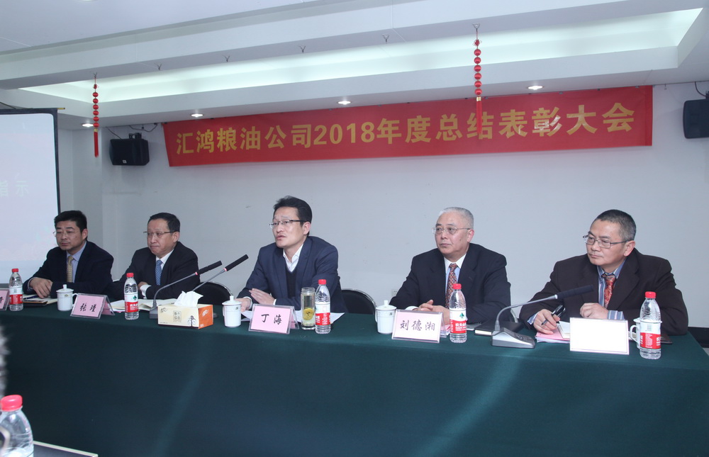 1月21日下午,汇鸿粮油公司召开2018年度总结表彰大会。集团副总裁丁海及集团相关部室领导、德勤事务所咨询副总监曹清平专家一行出席会议。会议由粮油公司张瑾总经理主持。
